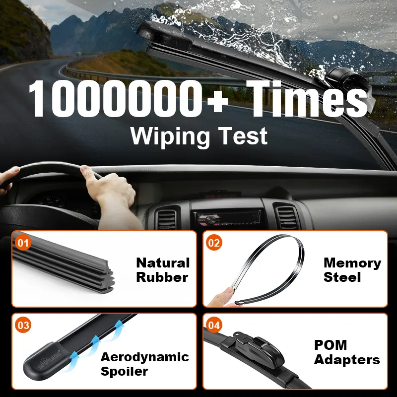 Spotsuz çerçevesiz araba silecek, 18 adaptörle araçların% 97'sine uyuyor. Aletsiz kurulum, pürüzsüz, pasa dayanıklı silme için teflon kaplı. 500.000 Wipe Dayanıklılık. Özel logo ve ambalaj mevcut - ciddi hacim ve marka farklılaşması için oluşturulur.