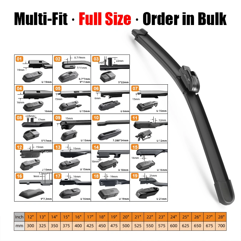 Güvenilir bir silecek tedarikçisi arıyorsanız, lütfen çekinmeyinbize Ulaşın veya e-postaWiperblade8@xmyujin.com En son silecek ürün kataloğunu ve rekabetçi toptan satış fiyatlarını almak için.